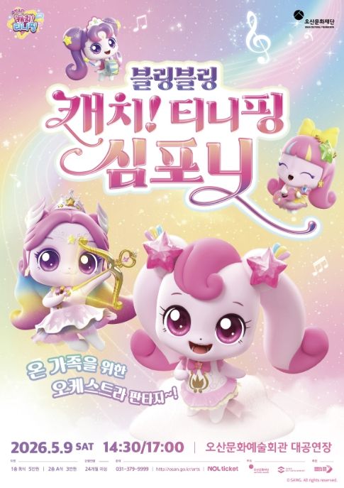 인사이드피플 강애자 기자 | 오산문화재단은 어린이날을 맞아 온 가족이 함께 즐길 수 있는 오케스트라 공연 ‘블링블링 캐치! 티니핑 심포니’를 선보인다고 밝혔다. 이번 공연은 인기 애니메이션 ‘캐치! 티니핑’ 시리즈의 OST를 오케스트라 라이브로 감상할 수 있는 무대로, 어린이뿐 아니라 가족 단위 관람객들에게 특별한 문화 경험을 제공할 예정이다.