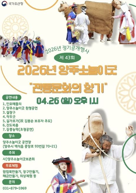 양주시 관계자는 “이번 행사는 국가유산청의 지원을 통해 무형유산의 가치를 널리 알리고, 시민들이 전통문화를 보다 친숙하게 접할 수 있도록 기획됐다”며 “앞으로도 지역 무형유산의 지속적인 전승과 활성화를 위해 노력하겠다”고 말했다.