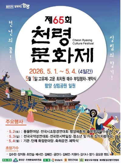 올해 천령문화제는 전통과 현대가 어우러진 공연과 체험 프로그램을 중심으로, 군민과 관광객이 함께 만들고 즐기는 참여형 축제로 꾸며진다.
