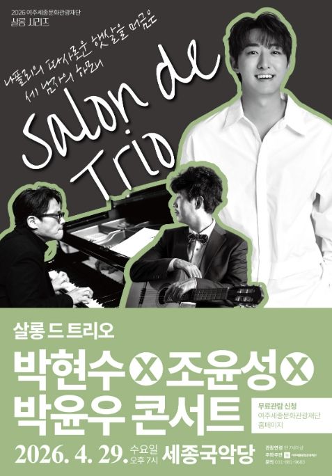 인사이드피플 강애자 기자 | 여주세종문화관광재단이 오는 29일, 문화가 있는 날을 맞아 2026년 특별기획 살롱 시리즈의 세 번째 무대 '살롱 드 트리오 박현수X조윤성X박윤우 콘서트'를 세종국악당에서 개최한다.