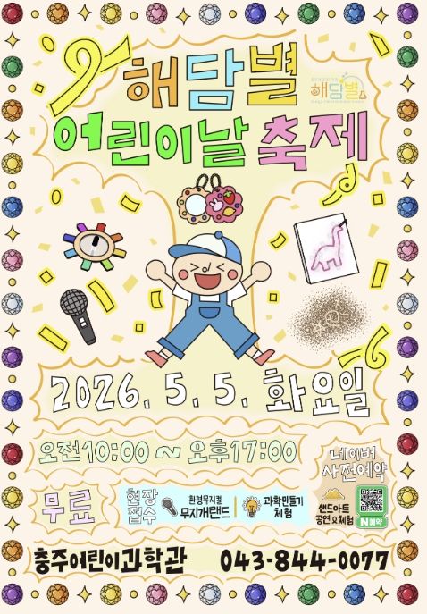 인사이드피플 강애자 기자 | 충주어린이과학관은 오는 5월 5일 어린이날을 맞아 연나이 8세 이하 어린이와 동반 가족을 대상으로 ‘해담별 어린이날 축제’를 무료로 개최한다고 밝혔다.