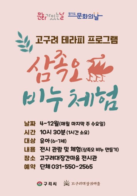 구리시 관계자는 “문화가 있는 날을 맞아 고구려대장간마을에서 역사와 체험이 결합한 유익한 시간을 보내시길 바란다”라며 “앞으로도 시민들이 쉽고 흥미롭게 역사를 체험할 수 있는 프로그램을 지속적으로 확대해 나가겠다”라고 밝혔다.