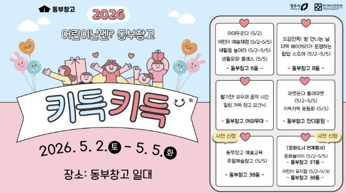 인사이드피플 강애자 기자 | 청주시와 청주시문화산업진흥재단은 가정의 달 5월을 맞아 오는 5월 2일부터 5일까지 동부창고 일원에서 어린이날 행사 ‘키득키득’을 연다.