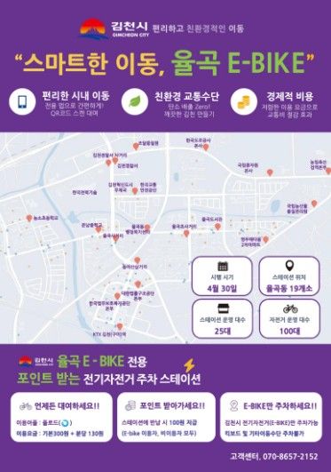 김천시 교통행정과장은 “율곡 E-BIKE는 시민들이 일상에서 체감할 수 있는 새로운 교통 서비스로, 단거리 이동의 불편을 해소하는 데 큰 역할을 할 것으로 기대된다.”라며, “운영 성과를 바탕으로 서비스 확대 여부도 적극 검토해 나가겠다.”라고 밝혔다.