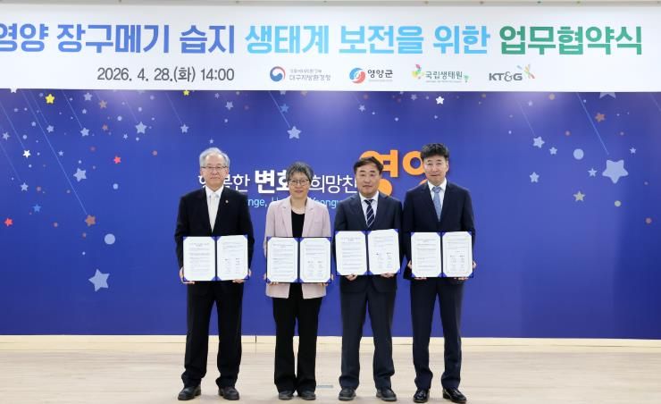 인사이드피플 노재현 기자 | 영양군은 대구지방환경청, 국립생태원, ㈜KT&G와 4월 28일, 영양 장구메기 습지 생태계 보전을 위한 업무협약을 체결했다.
