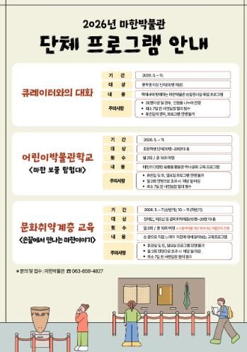 참여를 희망하는 단체는 5월 4일부터 마한박물관에 전화 신청 후 일정 협의를 거쳐 참여할 수 있다.
