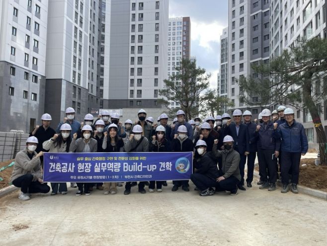 인사이드피플 노재현 기자 | 부천시는 지난 28일 건축업무 담당 공무원의 현장 대응력 향상을 위해 ‘건축공사 현장 실무역량 빌드업(Build-up) 견학’ 2차 과정으로 소사구 송내동 ‘송내역 푸르지오 센트비엔’ 마감공사 현장을 방문했다.
