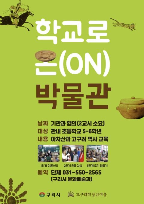 인사이드피플 노재현 기자 | 구리시는 4월 28일부터 오는 9월까지 고구려 유물 상자를 들고 관내 초등학교를 찾아가는 ‘학교로 온(ON) 박물관’프로그램을 운영한다고 밝혔다.