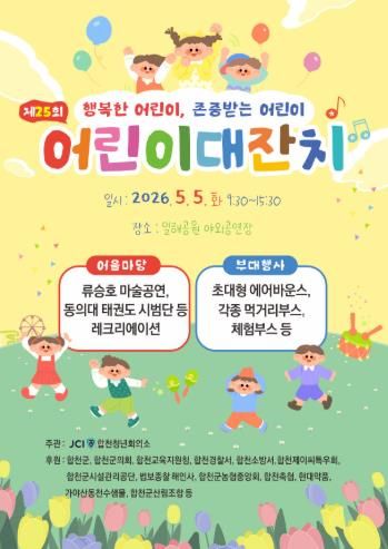 오범서 합천청년회의소 회장은 “우리 아이들이 스스로 얼마나 소중한 존재인지 느끼고, 마음껏 꿈을 펼칠 수 있는 하루가 되길 바란다.”며 “합천의 어린이들이 가족과 함께 웃고 즐기며 행복한 추억을 담아갈 수 있도록 행사 준비에 최선을 다하겠다”고 전했다.