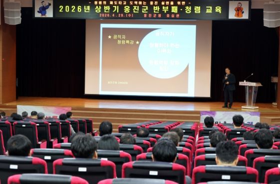 이번 교육은 종합청렴도 평가의 핵심 지표인 ‘청렴교육 이수율’을 제고하고 조직 내 청렴 역량을 강화하기 위해 마련됐다. 현장에는 임현택 부군수를 비롯한 간부 공무원들이 참석해 청렴 실천에 대한 강력한 의지를 다졌다.
