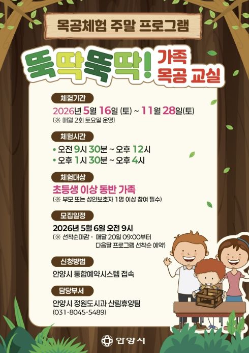 인사이드피플 노재현 기자 | 안양시는 초등학생과 가족이 함께 참여할 수 있는 목공체험 주말 프로그램인 ‘뚝딱뚝딱! 가족 목공 교실’을 운영한다고 30일 밝혔다.