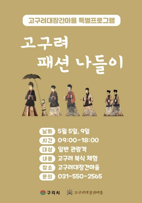 인사이드피플 노재현 기자 | 구리시는 오는 5월 5일과 5월 9일 고구려대장간마을에서 특별 프로그램 ‘고구려 패션 나들이’를 운영한다고 밝혔다.