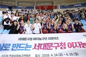 인사이드피플 조은설 기자 | 박찬숙 감독이 이끄는 서대문구청 여자농구단이 올해 첫 전국대회로 이달 24∼26일 경북 김천시 김천실내체육관에서 열린 ‘2026 전국실업농구연맹전’에서 준우승을 차지했다. 대회 첫날 사천시청에 63대 44로 승리한 서대문구청은 사실상의 결승전이 된 둘째 날 김천시청과의 경기에서 50대 52로 석패했다. 마지막 날 경기에서는 대구광역시청을 76대 41로 누르고 2승 1패로 대회를 마쳤다. 이날 김천시청은 사천시청에 57:55로 승리하며 3승으로 우승을 확정지었다. 서대문구청은 지난해에 비해 선수 엔트리가 줄어든 상황에서도 선전했다는 평가다. 지난해 10월 전국체육대회 2년 연속 금메달의 성과를 바로 잇지는 못했지만 서대문구청은 다음 대회인 6월 태백시장배 전국실업농구연맹전에서 올해 첫 우승에 다시 도전한다. 여기에서 우승하면 재작년과 작년에 이은 ‘태백 대회’ 3년 연속 우승의 성과도 얻는다. 한편 이번 대회에서도 ‘서대문구청 여자농구단 서포터스’가 체육관을 가득 메우는 함성과 박수로 열띤 응원을 펼치며 농구단에 힘을 더한 것은 물론 대회 전체 분위기까지 한껏 끌어올렸다.