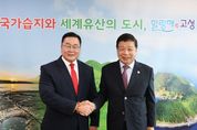 인사이드피플 심정보 기자 | 고성군은 10월 16일 군수실에서 이상근 군수와 차강 웁궁 자담바 주부산 몽골 영사가 만나 제6회 고성독수리 생태축제 및 한·몽 교류 협력 방안을 논의했다고 밝혔다. 이번 만남은 독수리 보호와 생태관광 네트워크 구축, 한국 거주 몽골 교민의 고성군 방문 추진 등 실무 협의의 일환으로 마련됐다. 이상근 군수는 차강 웁궁 자담바 영사에게 오는 12월 6일부터 7일까지 열리는 ‘제6회 고성독수리 생태축제’에 참석해 줄 것을 요청했으며, 공룡 발자국 화석으로 유명한 고성군과 진품 공룡 화석을 다수 보유한 몽골 간의 과학·교육 교류 방안도 함께 논의했다. 차강 웁궁 자담바 영사는 이날 2025년 경남 고성 공룡세계엑스포 행사장을 방문해 고성군의 문화·관광 인프라를 둘러보고, 향후 양국 간의 문화 교류 확대 가능성에 대한 의견을 나눴다. 이상근 고성군수는 “고성과 몽골은 독수리와 공룡이라는 자연의 유산으로 연결된 소중한 인연”이라며, “이번 방문으로 양국의 우호가 더욱 깊어지고, 고성군이 국제적인 생태·문화도시로 성장할 수 있는 계기가 되길 바란다”라고 말했다.
