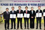 인사이드피플 조은설 기자 | 경상북도는 3월 17일 경북도청에서 ‘영주 국가대표 골프 트레이닝 센터 및 박인비 골프파크 조성사업을 위한 업무협약’을 체결하고 ‘영주 글로벌 골프 허브 도시 조성 프로젝트’를 본격 가동한다. 이날 협약식에는 이철우 경상북도지사를 비롯해 박성만 경상북도의장, 엄태현 영주부시장, 장상진 와우매니지먼트 대표, 프로골퍼 박인비, 김택수 대한체육회 진천선수촌장 등이 참석했다. ◈ 국가대표 트레이닝 센터와 국제대회 가능 27홀 대중제 골프장 단지 추진 이번 사업은 총사업비 1,500억 원이 투입되어 영주시 장수면 두전리 일원 43만평 부지에 국가대표 트레이닝 센터와 27홀의 대중제 골프장을 건립한다. 43만평의 부지에는 골프 인재 육성의 요람이 될 ▲국가대표·유소년 골프 트레이닝 센터 및 ▲스포츠 과학 지원시설, ▲국제대회가 가능한 27홀 규모의 대중제 골프장, ▲박인비 프로의 상징성을 담은 박인비 골프 박물관과 전문 아카데미가 건립되어 연간 약 50만 명 이상의 관광객 방문이 예상된다. 아울러, ▲400실 규모의 호텔 등 체류형 숙박시설과 ▲지역 특산물 판매시설, ▲캠핑장, ▲