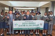 인사이드피플 노재현 기자 | 짐바브웨를 방문 중인 천안시 대표단이 지난 16일(현지시각) 하라레 시청에서 우호교류 10주년 기념행사에 참석해 양 도시 간 협력 관계를 공고히 했다. 김석필 권한대행 부시장은 이날 제이콥 마퓸 하라레시장과 면담을 갖고, 우호교류 10주년 기념패를 상호 교환했다 천안시는 천안의 국보인 ‘봉선홍경사 갈기비’를 형상화한 기념패를 전달했으며, 하라레시는 양 도시의 공동 발전을 기원하는 기념식수 행사를 열고 협력의지를 다졌다. 대표단은 하라레 시립도서관을 찾아 천안시 청수도서관 등에서 마련한 영어 도서 233권을 기증했다. 또한 샐리 무가베 국립 어린이병원을 방문해 현지 아동들을 위한 교육용 미니블록과 영어 동화책을 전달했다. 이어 주짐바브웨 대한민국 대사관이 주최한 환영 행사에 참석해 현지 한인회, 기업 관계자들과 함께 아프리카 지역 내 천안 기업의 진출 방안과 국제적 네트워크 강화 대책을 논의했다. 대표단은 이후 남아프리카공화국으로 이동해 세계한인경제무역협회(OKTA) 케이프타운지회와 수출·통상 협력 방안을 협의하고 한국전쟁 참전 기념비를 참배할