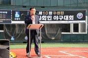 인사이드피플 김재윤 기자 | 수원특례시의회는 10월 19일 황구지천야구장에서 열린 ‘제10회 수원컵 전국 사회인 야구대회 개회식’에 참석해 선수들을 격려했다. 이번 대회는 경기일보가 주최하고 수원시야구소프트볼협회가 주관했으며, 전국 사회인 44개 팀이 참가해 뜨거운 열정 속에 경기를 펼쳤다. 이날 행사에는 이재식 의장, 김정렬 부의장을 비롯한 오세철 예산결산특별위원장, 김동은 의원이 함께해 선수단을 응원하며, 전국 각지에서 모인 야구 동호인들과 교류의 시간을 가졌다. 이재식 의장은 축사에서 “직장과 가정을 오가며 바쁜 일상 속에서도 야구에 대한 열정으로 최선을 다하는 선수 여러분께 진심 어린 박수를 보낸다”며 “이번 대회가 지역과 세대를 넘어 우정을 나누는 축제가 되길 바란다.”고 말했다.