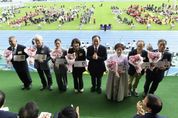 인사이드피플 강애자 기자 | 문경시는 10월 16일, 문경시민운동장에서 시민들의 화합 한마당 행사인 ‘제74회 문경시민체육대회 및 문화제’를 성황리에 개최했다. 개회식에는 신현국 시장을 비롯해 이정걸 시의회 의장, 노순하 체육회장, 권용문 문화원장 직무대행, 유진선 교육지원청 교육장, 지역 출향인사 등 많은 내빈이 참석해 자리를 빛냈다. ‘화합의 시민체전, Again 2031 세계군인체육대회!’라는 주제로 열린 이번 대회는 취타대와 14개 읍면동 선수단 입장을 시작으로 시민헌장낭독, 개회선언, 성화점화, 문경대상 시상식, 감사패 수여, 홍보대사 위촉식, 대회사 및 축사, 우승기 반환, 선수 및 심판대표 선서, 축하공연 순으로 다채롭게 진행됐다. 특히 대회의 하이라이트인 성화 봉송 최종 주자는 대한민국 소프트테니스 역사상 최초로 전국 남중부 단체전 6개 대회 전관왕을 달성한 문경중 소프트테니스부 선수들과 올해 문경단오씨름대회에서 소백장사에 오른 문경시청 실업팀 박대한 선수로 문경의 위상을 높인 인물들이 맡았다. 이날 축하공연에는 ‘제3회 문경트롯가요제’의 수상자이자 이번에 문경시 홍보대사로 위촉된 장