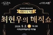 인사이드피플 강애자 기자 | 서울 서초구가 가정의 달 5월을 맞아 오는 5월 2일 토요일 오후 4시, 서초문화예술회관 아트홀에서 서초토요콘서트 '최현우의 매직쇼'를 개최한다고 밝혔다. 온 가족이 특별한 추억을 만들 수 있도록 마련된 '최현우의 매직쇼'는 국내 대표 마술사 최현우가 선보이는 환상적인 매직 퍼포먼스를 통해 가족 단위 관람객에게 풍성한 볼거리를 제공할 예정이다. 특히 단순한 마술 공연을 넘어 관객과 함께 호흡하며 몰입감을 높이는 참여형 무대로 구성돼, 눈앞에서 펼쳐지는 다채로운 퍼포먼스와 유쾌한 연출로 공연장을 찾은 관객들에게 잊지 못할 시간을 선사할 것으로 기대된다. 이번 공연은 서초구민 우선예매와 일반예매 모두 1시간 만에 전석 매진되며 높은 관심을 입증했다. 공연과 관련한 자세한 사항은 서초구청 홈페이지를 확인하거나 문화관광과로 문의하면 된다. 한편 구는 사계절 내내 구민들이 일상 속에서 문화예술을 향유할 수 있도록 다양한 공연과 축제를 운영하고 있다. 앞으로도 계절별·테마별 문화행사를 통해 ‘대한민국 대표 문화예술도시 서초’의 위상을 지속적으로 강화해 나갈 계획이다.
