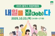 인사이드피플 강애자 기자 | 동작구가 오는 23일 오후 2시 구청 신청사에서 2025 취업박람회 ‘내일을 잡(Job)다’를 개최한다고 밝혔다. 이번 박람회는 구직자의 취업 스트레스 해소와 역량 강화를 지원하기 위해 마련됐다. 관내 유한양행 등 다수의 우수기업과 유관기관이 참여해 채용 및 직업 탐색 기회를 제공할 예정이다. 특히, 올해는 축제 결합형 일자리박람회로서 신청사 곳곳에서 다양한 체험 부스와 부대행사가 함께 운영된다. 먼저, 4층 대강당에서는 관내 유한양행 등 20여 개의 참여기업이 ‘채용부스’를 설치해 구직자를 대상으로 현장 면접과 간접 채용을 진행한다. 또한 구청을 비롯해 동작취업지원센터, 서울관악고용복지+센터 등 유관기관에서 준비한 ‘홍보부스’에서는 취업·직업훈련·고용지원 정보를 제공한다. 이와 함께 4층 소회의실에는 △AI 인적성 검사 △취업타로 △퍼스널컬러 진단 △이력서 사진 촬영 등으로 구성된 ‘취업지원존’이 마련되며, 이곳에서는 이력서·자기소개서 1:1 컨설팅도 받을 수 있다. 1층 로비에는 △메이크업 아티스트 △아로마 향수 만들기 △네일아트 △캘리그라피
