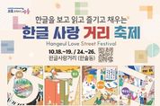 인사이드피플 강애자 기자 | 세종시문화관광재단은 오는 10월 18일부터 26일까지 한솔동 한글사랑거리(첫마을 정류장 인근) 일원에서 ‘한글 사랑거리 축제’를 개최한다. 이번 축제는 한글문화도시 세종의 상징공간인 ‘한글 사랑거리’를 중심으로 시민이 한글을 보고, 읽고, 즐기며 한글문화의 가치를 체험하는 문화축제로 마련됐다. 특히 한국영상대학교, 한솔동 상인회 등 지역기관이 함께 참여해 한글문화를 지역상권과 연결하고 세종만의 한글문화 네트워크를 확장할 전망이다. 행사는 10월 18~19일과 24~26일, 총 5일간 진행되며, ‘읽고·보고·즐기고·채우는’ 네 가지 주제를 중심으로 전시·공연·체험·먹거리가 어우러진 다채로운 프로그램으로 시민들을 맞이한다. 먼저 한글을 ‘읽고’ 즐길 수 있는 테마에서는, 한글 이야기 공모전 선정작 5편과 삽화·캐릭터 디지털 감상, 거리에서 펼쳐지는 자율 독서로 한글의 즐거움을 느껴볼 수 있다. 거리 곳곳에서는 시민들이 ‘보고’ 즐길 수 있는 다양한 공연이 이어진다. 18일에는 한글 컬러마임 퍼포먼스(13시), 세종거리예술가 공연(17시)이 펼쳐지고 19일·25일·26일에는