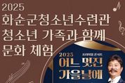 인사이드피플 강애자 기자 | 화순군은 2일 청소년수련관에서 짙어가는 가을의 정취 속에 청소년과 가족이 함께하는 특별한 문화체험, 바리톤 김동규의 프리미엄 콘서트'어느 멋진 가을날'을 관람할 청소년 가족 60명을 선착순 모집한다고 밝혔다. 이번 공연은 10월 30일 저녁 7시 광주 예술의전당 대극장에서 열리며, 청소년과 가족이 함께 클래식의 향연을 만끽할 수 있는 뜻깊은 시간으로 감미로운 선율과 가을의 낭만이 어우러져 청소년의 문화 감수성을 일깨우고, 가족에게는 따뜻한 교감의 장을 선사할 것으로 기대된다. 10월 12일부터 10월 21일까지 화순군에 주소를 둔 초등학생 이상 24세 이하 청소년 및 청소년 가족이면 누구든지 청소년수련관 홈페이지를 통해 프로그램 신청 게시판에서 접수가 가능하다. 신청은 가족별로 이뤄지며, 최종 확정자는 개별 문자로 안내될 예정이다. 서봉섭 화순군 가족정책실장은 “이번 공연은 청소년들이 수준 높은 공연 예술을 감상함으로써 문화적 소양을 기를 소중한 기회가 될 것이며, 가족이 함께 감동을 나누는 특별한 시간이 될 것”이라며, “앞으로도 청소년수련관은 청소년들의 성장을 돕는
