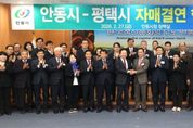 인사이드피플 김재윤 기자 | 평택시의회는 2월 27일, 안동시청에서 평택시-안동시 자매결연 협약식에 참석해 양 도시의 상생 발전을 다짐했다. 이날 협약식에는 평택시의회 이종원 의회운영위원장, 김영주 기획행정위원장을 비롯하여 정장선 평택시장 등 평택시 대표단이 참석하고 김경도 안동시의회 의장, 권기창 안동시장 등 안동시 대표단이 함께하며 상호 협력 의지를 다졌다. 협약식은 ▲협약서 서명 및 교환 ▲기념품 교환 ▲지역 농특산품 판로 개척 및 로컬푸드 교류 협력 방안 등이 논의됐다. 이어 안동 하회마을을 방문해 문화·관광 교류 확대에 대해서도 의견을 나눴다. 평택시의회 이종원 의회운영위원장은 “평택은 서해안의 관문이자 국제교류의 중심 도시이고, 안동은 깊은 전통과 유교 문화가 뿌리내린 선비문화의 본고장”이라며 “서로 다른 강점과 매력을 지닌 두 도시가 손을 맞잡는 의미는 매우 크다”라고 말했다. 이어 “양 도시의 상생과 우정이 시민이 체감할 수 있는 실질적인 성과로 이뤄지도록 평택시의회도 적극 지원하겠다”라고 밝혔다. 안동시의회 김경도 의장은 “평택시와의 자매결연은 전통과 산업이 만나 새로운 상생 모델을
