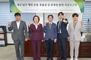 인사이드피플 김재윤 기자 | 대구광역시 남구의회 의원연구단체 ‘대구 남구 살림살이 연구회’는 10월 22일 남구의회 제2소회의실에서 ‘대구 남구 재정 운용 효율성 및 효과성 분석 연구’ 최종보고회를 개최했다. 이번 연구는 지난 6월부터 진행됐으며, 남구 재정의 구조적 문제를 다각도로 검토하기 위해 9월 중간보고회를 열고, 경기도 광명시의 우수사례를 비교·분석하는 등 현장 중심의 검토 활동을 이어왔다. 이날 보고회에서는 중간보고에서 제시된 건의사항과 선진사례 분석 결과를 종합한 최종보고서 내용이 발표됐으며, 남구 재정운용의 효율화 방안을 주제로 심도 있는 토론이 진행됐다. 연구단체 구성 의원들은 “이번 연구용역을 통해 남구 재정의 현황과 개선 방향을 구체적으로 확인할 수 있었다”며, “의회의 감시와 견제 기능을 강화해 구민의 눈높이에 맞는 합리적 예산 운영이 이루어지도록 노력하겠다”고 밝혔다. 강민욱 연구단체 대표의원은 “지방재정은 단순한 숫자의 조정이 아니라 지역의 미래를 설계하는 전략적 수단”이라며, “이번 연구를 통해 구조적 문제를 진단하고 구민이 체감할 수 있는 효율적 재정운용 방향을 마련해,