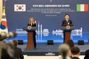 인사이드피플 노승선 기자 | 이재명 대통령은 19일 조르자 멜로니 이탈리아 총리와의 정상회담 뒤 "저와 멜로니 총리는 전략적 동반자 명칭에 부합하는 미래지향적 수준으로 양국 관계를 더욱 발전시켜 나가기로 합의했다"고 밝혔다. 이 대통령은 이날 청와대에서 멜로니 총리와의 정상회담 후 '공동 언론 발표'에서 이같이 말했다. 이 대통령은 "교역 분야 협력은 양국 경제규모와 브랜드 파워에 걸맞은 수준으로 더욱 확대하기로 했다"며 "이를 위해 양국 기업이 참여하는 한-이탈리아 비즈니스 포럼을 새 기회 창출의 장이자 기업 애로 상담 창구로 활성화하는 데 뜻을 모았다"고 밝혔다. 이어 "특히 중소기업 생태계가 잘 발달한 이탈리아의 강점을 바탕으로 중기 육성과 지원에 관한 협력도 함께 추진해 나갈 것"이라고 말했다. 이 대통령은 또 "국가 미래가 달린 과학분야 협력이 더욱 확대될 것"이라며 "기초응용분야 공동연구지원을 통해 역량 있는 연구자를 지속 발굴하고 인공지능, 우주항공 같은 첨단산업으로 협력의 지평을 더욱 넓혀가겠다"고 밝혔다. 이어 "방산 분야에서도 서로 강점에 기초해 상호 보완적 협력을 이