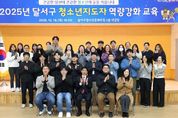 인사이드피플 노재현 기자 | 대구 달서구는 지난 18일, 달서구청소년문화의집 대강당에서 관내 청소년시설 종사자를 대상으로 '2025년 청소년지도자 역량강화 교육'을 성황리에 개최했다. 이번 교육에는 청소년수련관, 청소년문화의집, 청소년쉼터, 청소년상담복지센터, 성서청소년상담복지센터, 학교밖청소년지원센터 등 관내 6개 청소년시설에서 근무하는 청소년지도자들이 참여해 전문성 강화와 재충전의 시간을 가졌다. 달서구는 변화하는 청소년 정책 환경에 선제적으로 대응하고, 현장에서 발생하는 다양한 사례에 효과적으로 대응할 수 있도록 지도자의 전문 역량을 높이는 데 이번 교육의 목적을 두었다. 특히 청소년 지도의 사명감을 되새기는 동시에 지도자 개인의 심신 건강을 돌봄으로써 청소년 활동의 질적 수준을 높이고자 했다. 이날 교육은 지도자들의 재충전과 활력 증진에 초점을 맞춘 프로그램으로 구성됐다. 허세호 달서구청소년상담복지센터 센터장이 ‘자발적 스트레스 해소’를 주제로 특별 강연을 진행해, 현장에서 겪는 정서적 부담을 건강하게 관리하는 실질적인 방법을 공유하며 큰 공감을 얻었다. 이어 진행된
