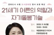 인사이드피플 노재현 기자 | 수원문화재단이 오는 11월 10일 월요일 오후 1시, 복합문화공간 111CM에서 심리학 전문가 이호선 교수를 초청해 시민 대상 인문심리 특강 “21세기 어른의 역할과 자기돌봄 기술”을 개최한다. 이번 강연은 문화도시 조성사업 중 ‘도시문화랩’의 일환으로 마련됐다. ‘도시문화랩’은 외로움, 고립 등 현대 도시의 사회적 문제를 문화적으로 완화하기 위한 프로젝트로, ‘서로를 살피고 문제에 맞서는 문화도시 수원’이라는 비전을 바탕으로 건강한 도시문화 형성을 위해 다양한 프로그램을 운영하는 사업이다. 11월 특강에서는 세대 간 이해, 올바른 상호 소통법, 마음건강 관리법 등을 다룰 예정이다. 이호선 교수는 숭실사이버대학교 교수이자 한국노인상담센터 센터장으로, JTBC '이혼숙려캠프', tvN '어쩌다 어른' 등 다수의 방송을 통해 대인관계와 심리 건강의 중요성을 알리며 대중적 신뢰를 쌓아온 심리학자다. 이번 강연에서는 급변하는 세대를 살아가는 어른으로서의 역할과 책임, 그리고 스스로를 돌보며 건강하게 관계를 이어가는 방법을 심리학적으로 풀어낸다. 수원문화재단 관계자는 “이번 도시문화랩 명사초