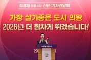 인사이드피플 노재현 기자 | 김성제 의왕시장이 5일 시청 대회의실에서 2026년 신년 기자간담회를 열고 민선8기 의왕시 주요성과와 2026년 시정 운영방향에 대해 설명하는 시간을 가졌다. 김 시장은 “지난 3년 반은 의왕시의 새로운 미래를 준비하며 역동적으로 도약해 온 시간이었다”며, “대규모 도시개발과 복선전철 사업을 비롯해 교육과 복지, 문화‧예술, 일자리, 안전에 이르기까지 도시 전반에 걸쳐 혁신적인 변화를 만들어 왔다”고 평가했다. 특히, 오랫동안 해결되지 못했던 숙원사업들이 해결된 것을 의왕시의 주요 성과로 설명하며, 대표적인 사례로 의왕 문화예술회관 착공, 인덕원~동탄 및 월곶~판교 복선전철 착공, 내손중고통합학교 개교, 의왕 종합병원 유치 등을 꼽았다. 또한, 초평지구와 청계2지구 내 기업·투자 유치, 부곡커뮤니티센터 착공, 의왕역~판교 간 프리미엄버스 및 초평동 똑버스 신설, 의일로2 개통 등 도로망 확충, 22개 맨발걷기길 조성, 백운호수 생태탐방로 및 백운호수공원 개장, 의왕야구장 및 금천천 파크골프장 개장, 글로벌인재센터 부곡분원 개소, 노인 버스 무료승차 지원사업 추진, 장애인 힐링쉼터 개