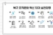 인사이드피플 노재현 기자 | 광주광역시 북구는 건강한 조직으로 체질 개선하기 위한 의지가 담긴 10대 실천강령을 선포한다고 29일 밝혔다. 10대 강령은 일하는 방식 및 경직된 조직문화 개선을 통해 행정서비스의 질적 향상을 도모하고자 마련됐다. 앞서 북구는 지난 2월 수립된 ‘2026년 북구 조직문화 혁신운동 추진계획’을 근거로 부구청장을 단장으로 하는 ‘북구 조직문화 혁신추진단’을 올해 처음 구성했다. 추진단은 ‘조직문화 혁신운동 추진계획’에 포함된 33개의 세부과제가 내실 있게 추진될 수 있도록 점검하고 신규 과제를 발굴하는 역할을 담당한다. 지난 17일에는 추진단의 심의를 통해 조직문화 개선 과정에 공직자들의 참여를 독려하기 위한 ‘10대 실천강령’을 확정했다. 강령은 ▲소통 강화 ▲스마트 행정 ▲유연한 근무 환경 조성 등 3개 중점 과제에 기반해 도출됐으며 올해 초 공직자를 대상으로 실시한 조직문화 진단 설문조사 결과를 반영해 체감도를 높였다. 북구는 다음 달 18일부터 2주간을 ‘10대 강령 집중 실천 기간’으로 정하고 실적 우수부서에는 격려금을 지급하는 등 포상할