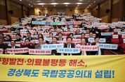 인사이드피플 노재현 기자 | 지난 12월 17일 국회의원회관 대회의실에서 김형동 국회의원과 임미애 국회의원이 공동 주최한 ‘경상북도 국립․공공의대 설립 국회토론회’가 열렸다. 이날 토론회에는 이철우 경상북도지사, 권기창 안동시장 등 지자체 주요 인사와 경상북도 국립의과대학 설립 범시도민단을 포함한 시민단체 관계자 등 약 450명이 참석해 경북 지역 의료 여건과 국립의과대학 설립 필요성에 대한 논의를 이어갔다. 또한 권오을 국가보훈부 장관, 김도읍 국민의힘 정책위원회 의장, 김영호 더불어민주당 교육위원회 위원장 등 여야 의원 30여 명이 참석해 경북 국립의대 설립에 대한 관심을 보였다. 1부 개회식에서는 참석자들이 ‘경북 도민의 염원, 국립․공공의대 설립’이라는 문구가 적힌 손팻말을 들고 지역 의료 현안에 대한 공감의 뜻을 함께 표현했다. 2부에서는 유천 국립목포대 의과대학설립추진단 부단장이 ‘전남 국립의대 설립 현황 및 계획’을, 정태주 국립경국대학교 총장이 ‘경북도 국립․공공의대 설립의 필요성과 추진 방향’을 주제로 발표했다. 이어진 토론에서는 정태주 총장이 좌장을 맡고 김윤 국회의원