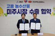 인사이드피플 박미영 기자 | 고흥군은 공영민 군수를 단장으로 한 ‘고흥군 농수산물 미주 수출개척단’이 지난 4월 7일 미국 현지에서 ㈜치맥스프로듀스와 2천만불, ㈜제이원과 1천만불 등 2개사에 총 3천만불의 고흥농수산물 가공품을 수출하기로 협약 체결을 했다고 밝혔다. ㈜치맥스프로듀스(대표 김경남)는 2006년 설립되어 17년째 미국 현지에서 다양한 농식품을 유통하는 업체이다. 주요 거래처로 미국 중서부 코스트코(41개 지점), 크로거, 노스게이트 등 약 1만개 지점에 식음료를 전문적으로 납품하고 있으며, 2018년부터 고흥동강청정식품단지에 자회사인 ㈜예인티앤지를 설립해 미국 시장 식품 유통전문업을 하고 있는 회사이다. ㈜제이원(대표 이승훈)은 1999년 풀무원㈜ 임원 출신의 대표가 미국 현지에서 직접 두부를 생산ㆍ판매하는 것을 시작으로 한국 농식품 1천여 가지를 미주시장에 전문으로 유통하고 있는 업체이다. 현재 미국 내 한국계 유통업체 중 4위의 경쟁력을 갖춘 기업으로 지난해 8천만불의 매출액을 올리고 있는 미국 현지 대형 식품유통사이다. ‘고흥군 농수산물 미주 수출개척단’은 미국 내 K-푸드 열풍을 이끌고 있는 ㈜제이원 및 ㈜치맥스프로듀스사