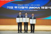 인사이드피플 박미영 기자 | 당진시가 22일 충남도청에서 ㈜아이디씨당진제일차, ㈜건지이엔지, ㈜NI스틸, ㈜삼윤과 함께 당진의 새로운 성장동력이 될 총 2조 2,155억 원 규모의 투자협약을 체결했다. 이번 협약으로 ㈜아이디씨당진제일차는 총 2조745억의 투자를 통해 송산2일반산업단지에 43,188.2㎡ 규모의 부지에 13,264개의 서버랙을 운영하는 하이퍼데이터센터를 구축할 계획이며 ㈜건지이엔지는 1천억 원 투자를 통해 46,280㎡ 규모의 반도체 설비용 배관공장을 신설할 계획이다. 또한 ㈜NI스틸과 ㈜삼윤은 건설용 철강재를 생산하기 위해 순성면 일원에 30,082㎡, 81,005㎡ 규모의 공장을 각각 신설하며 120억과 290억 원을 투자하게 된다. 각 기업의 고용인원은 ㈜아이디씨당진제일차 1,000명, ㈜건지이엔지 200명, ㈜NI스틸 10명, ㈜삼윤 41명으로 총 1,251명 수준으로 예상되며 상당수를 지역에서 채용 예정인 만큼 당진의 일자리 창출과 지역경제 활성화에 기여할 예정이다. 특히 협약 기업들 모두 입을 모아 철도, 제2의 서해대교 개통 등 기반 시설 인프라 구축 및 유치에 힘쓰고 적극 행정 등 행정서비스 개선을 위해 노력