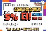 인사이드피플 심정보 기자 | 김해시는 오는 10일부터 김해사랑상품권 결제금액의 5%를 김해사랑상품권으로 환급(캐시백)하는 추가 할인 행사를 추진한다고 6일 밝혔다. 지역사랑상품권 국비지원 발행분 판매실적 우수 지자체로 선정돼 추가 인센티브를 교부받아 이뤄지는 행사이다. 추가 인센티브는 1차 정부 추경예산 지원을 받아 발행한 지역사랑상품권 8월 말 기준 판매실적 평가 결과에 따른 것으로, 총 300억 원 규모로 전국 33개 지자체가 선정됐으며 경남에서 김해시가 유일하다. 추가 할인은 김해사랑상품권뿐 아니라 김해공공배달앱상품권, 김해온몰상품권 결제금액에도 동일하게 적용된다. 이번 행사는 3억 원 규모로 예산 소진 전까지 진행되며 환급은 추가할인 종료 이후인 12월 중 일괄 지급 예정이다. 시는 앞서 지난 10월 29일부터 9일까지 ‘코리아그랜드페스티벌’과 연계해 김해사랑상품권 추가환급 행사를 진행하고 있으며 이번 추가할인은 그 연장선에서 지역 소상공인 매출 증대와 시민 소비 촉진에 큰 도움이 될 것으로 기대된다. 시 관계자는 “이번 추가할인은 전국적으로 우수한 판매실적을 인정