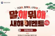 인사이드피플 장은미 기자 | 기대해, 함께해, 시작해! 말의 해 뭐해? 새해 이벤트 2026년 더 달라질 대한민국! 눈길 끄는 정책 뽑고 선물 받자! ■ 이벤트 기간 '25. 12. 31.(수) ~ '26. 1. 31.(토) ■ 선물 · 디지털 온누리상품권 3만 원(10명) · 편의점 이용권 1만 원(20명) ■ 이벤트 참여방법 ① 정책브리핑 이벤트 페이지 접속 ② 공감 또는 기대되는 정책 선택하기 ③ 개인정보 입력 후 참여 완료!
