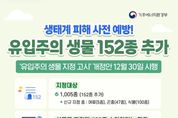 인사이드피플 장은미 기자 | 생태계 피해 사전 예방! 유입주의 생물 152종 추가 - '유입주의 생물 지정 고시' 개정안 12월 30일 시행 ■ 지정대상 - 1,005종 (152종 추가) · 신규 지정 종: 어류(5종), 곤충(47종), 식물(100종) ■ 신규로 지정된 152종 수입하려는 경우 - 사전 관할 유역(지방)환경청 승인 필요 ※ 불법 수입 시 2년 이하 징역 또는 2천만원 이하 벌금 부과 ■ 확인방법 - 기후에너지환경부 누리집 및 한국외래생물정보시스템(2026년 1월 공개) 생태계 보전을 위해 유입주의 생물 수입에 각별한 주의를 기울여 주세요!
