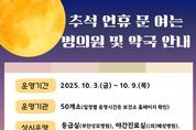 인사이드피플 장은미 기자 | 대구 남구는 추석 연휴기간(10. 3.~10. 9.)동안 주민의 의료 이용 불편을 최소화하고, 의료공백 없는 안전한 명절을 위해 비상진료 대책을 마련해 추진한다고 밝혔다. 남구는 개천절(10.3.), 한글날(10.9.)과 겹쳐 길어진 추석 연휴기간을 대비해 지역주민의 의료 이용에 불편이 없도록 남구보건소와 관내 병의원 186개소, 약국 70개소가 비상진료를 실시 할 예정이다. 남구보건소는 추석 연휴동안 비상진료 대책 상황실을 운영하며, 10. 5. ~ 10. 7. 3일간 오전 9시에서 오후 6시까지 비상진료를 실시한다. 연휴 기간 응급환자 발생에 대비해 지역 내 응급의료기관 4개소에 응급환자에 대한 진료 강화를 요청하고, 다수 환자 발생 시 신속한 환자 이송 및 대응을 위해 119구급상황관리센터와 24시간 비상 연락 체계를 유지한다. 추석 당일인 6일은 남구보건소와 함께 김태년내과의원(대명5동)에서 오전 9시부터 오후 1시까지 진료할 예정이다. 이외 달빛어린이병원으로 지정된 한영한마음아동병원은 명절 당일을 제외하고 오전 9시부터 오후 6시까지 진료하며 소아응급에도 공백