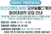 인사이드피플 장은미 기자 | 거창군은 오는 11일부터 3월 20일까지'2026년 보건소 모바일 헬스케어'사업 참여자 78명(남 39명, 여 39명)을 모집한다. ‘모바일 헬스케어’는 보건소를 매일 방문하기 어려운 성인을 대상으로, 스마트 애플리케이션을 활용해 시간과 장소 제약 없이 맞춤형 건강관리 서비스를 지원하는 사업이다. 모집 대상은 지역 내 만 19세 이상 만 65세 미만 중 스마트폰 활용이 가능한 성인이며 혈압, 혈당, 허리둘레, 중성지방, HDL콜레스테롤 등 건강위험 요인이 많은 대상자를 우선 선발한다. 단, 고혈압, 당뇨, 고지혈증 진단자 또는 관련 약물 복용자는 제외된다. 사업참여자로 선정되면 무료로 제공되는 스마트워치 또는 개인이 보유한 갤럭시·애플워치 등을 활용해 보건소 전문인력(간호사, 영양사, 운동전문가 등)으로부터 6개월간 지속적인 건강관리 서비스와 3회의 무료 건강검진도 받을 수 있다. 신청은 사전 예약(전화·방문·QR코드) 후 보건소에 방문 신청하거나, 유선 문의 후 신청서를 이메일로 제출하면 된다. 아울러, 보건소 방문이 어려운 면 지역 주민과 근로자를 위한 ‘찾아가는 모