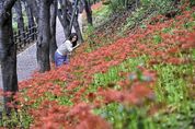 인사이드피플 강애자 기자 | 울산 남구 선암호수공원이 가을을 붉게 수놓은 꽃무릇으로 물들고 있다. 남구에 따르면, 호수 산책로 4km와 축구장 옆 테마쉼터에 조성된 49만여 본의 꽃무릇은 9월 20일부터 개화해 10월 초까지 이어지며, 특히 9월 마지막 주말 절정을 맞아 가장 화려한 풍경을 만날 수 있다. 개화 후 약 열흘간 이어지는 붉은 물결은 시민들의 일상에 특별한 가을의 감동을 전한다. 남구는 2019년부터 꽃무릇을 심기 시작해 꾸준히 확장해 왔고 올해 '선암호수공원 명품둘레길 조성 사업'을 통해 약 2만 5천여 본의 꽃무릇을 추가로 심어 총 51만 5천여 본 규모의 대규모 군락지로 거듭나도록 할 예정이다. 아울러 수선화, 왜성조팝나무 등 다양한 초화류와 수목을 심고 휴게공간도 조성해 시민들이 풍성한 볼거리와 쾌적한 휴식을 즐길 수 있도록 할 계획이다. 꽃무릇은 수선화과에 속하는 여러해살이 구근식물로 본래 이름은 돌 틈에서 나오는 마늘종 모양을 닮아 '석산화(石蒜花)'라 불리며 특히 잎이 나기 전 꽃이 먼저 피는 독특한 특성으로 인해 '이루지 못할 사랑'이라는 꽃말이 유래했다.