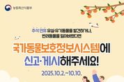 인사이드피플 장은미 기자 | 추석 연휴 유실·유기동물을 발견하거나, 반려동물을 잃어버렸다면 국가동물보호정보시스템에 신고·게시해주세요! ■ 추석 연휴 유실·유기동물 구조 통합 신고시스템 운영으로 신속한 온라인 신고·접수 가능 · 기간: 2025.10.2.(목)~10.10.(금) · 신고 게시: 국가동물보호정보시스템 누리집 팝업창 ■ 유실·유기동물 온라인 신고·접수 방법 ① 유실·유기동물을 발견한 경우 국가동물보호 정보시스템 '동물발견' 배너 클릭 → 발견장소, 사진, 개체 특징 등 제보 등록 → 해당 지자체 보호센터 정보제공 → 지자체 동물보호센터 신속 대응 ② 반려동물을 분실한 경우 국가동물보호 정보시스템 '동물분실' 배너 클릭 → 반려동물 분실장소, 일시, 사진 등 정보 등록 → 시민 간 발견 정보 공유(댓글 창 활성화) → 필요시 분실신고 병행(등록동물 정보 변경) 유실·유기동물 구조 통합신고로 보호자를 빠르게 찾아드리겠습니다