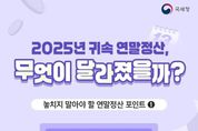 인사이드피플 장은미 기자 | ■ 2025년 연말정산 혜택 종합안내 · 국세청이 2025년 귀속 연말정산부터 새롭게 적용되는 공제·감면 사항에 대해 미리 알려드립니다! - 2025년 귀속 연말정산 일정 *카드 이미지 참조 - 홈택스 「간소화서비스」 개통 2026.1.15.(목) · 교육비 등 공제·감면에 필요한 소득·세액공제 자료 45종을 손쉽게 확인 가능 · 발달재활 서비스 이용증명서, 수영장·체력단련장 신용카드 등 사용(7.1. 이후)이용료 최초 제공 ■ 자녀·가족 공제, 이렇게 바뀌었습니다! · 자녀세액공제 상향 - 8세 이상 20세 이하 기본공제 대상 자녀 수에 따른 자녀세액공제 금액 10만 원 상향 *자녀 1명(25만 원), 2명(55만 원), 3명(95만 원), 4명(135만 원) 등 · 발달재활아동 장애 증빙 인정범위 확대 - 발달재활서비스 이용증명서 만으로 장애인 추가공제(200만 원) 가능 *발달재활서비스를 지원받는 아동이 9세 미만 · 중소기업 취업자 감면 합리화 - '25.3.14. 이후 중소기업 재취직한 남성 근로자도 취업일로부터 3년간 소득세의 70% 감면 &nb