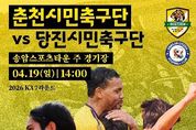 인사이드피플 조은설 기자 | 춘천시민축구단이 오는 19일 홈경기 3연승에 도전한다. 춘천시민축구단은 19일 오후 2시 송암스포츠타운 주경기장에서 당진시민축구단을 상대로 2026 K3리그 홈경기를 치른다. 이번 경기는 홈 3연승 달성과 함께 리그 상위권 진입을 위한 중요한 분수령이 될 전망이다. 특히 이번 경기는 4월 20일 ‘장애인의 날’을 기념해 다양한 체험 프로그램이 함께 운영된다. 경기장 일대에서는 장애인체육 종목인 한궁, 슐런, 휠체어 체험 등이 마련돼 시민 누구나 참여할 수 있으며 에스코트 키즈 역시 명진학교 학생들이 함께해 의미를 더할 예정이다. 경기 당일에는 선수단 팬사인회를 비롯해 푸드트럭 운영, 선수 사생대회 등 다양한 참여형 이벤트도 함께 열려 경기장을 찾은 시민들에게 즐거움을 제공할 계획이다. 또한 최근 기온이 상승함에 따라 관람객 편의와 안전을 고려해 관람 구역을 기존 가변석이 아닌 그늘이 확보된 W석 중심으로 운영할 예정이다. 치어리더와 함께하는 응원전도 펼쳐져 현장 분위기를 더욱 뜨겁게 달굴 것으로 기대된다. 춘천시는 홈