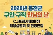 인사이드피플 강애자 기자 | 홍천군은 지역 주민의 취업 기회를 확대하고 기업의 인력난을 해소하기 위해 오는 4월 17일과 24일 두 차례에 걸쳐 ‘2026년 구인·구직 만남의 날’ 행사를 개최한다. 이번 행사는 구인 기업과 구직자가 직접 만나 채용 설명과 면접을 진행하는 맞춤형 채용 행사로, 홍천읍 행정복지센터 3층 대회의실에서 열린다. 먼저 4월 17일 오후 1시부터 3시까지는 CJ프레시웨이㈜가 참여해 육군종합군수학교 1 수송연대 내 단체 급식 조리원 20명을 모집한다. 선발된 인력은 식재료 전처리, 조리, 세척, 배식 등의 업무를 담당하게 된다. 이어 4월 24일 오후 2시부터 4시까지는 관내 우수 제조기업인 태양 3C㈜의 채용 설명회가 열린다. 제조 설비 증설에 따라 생산 분야에서 근무할 신규 인력 50명을 모집하며, 현장에서는 기업 소개와 함께 1대1 심층 면접도 진행할 예정이다. 이번 행사는 사전 등록 또는 현장 방문을 통해 참여할 수 있다. 구직자는 기업의 상세 근로조건을 듣고 바로 면접에 참여할 수 있으며, 참여를 희망하는 사람은 이력서를 지참해 행사 시간 안에 방문하면 된다. &nbs