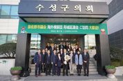 인사이드피플 김재윤 기자 | 수성구의회는 21일 일본 이즈미사노시의회 해외시찰단이 양 도시 의회 간 교류 증진 및 선진 시설 시찰을 목적으로 수성구의회를 방문했다고 밝혔다. 오사카부 남서부에 위치한 이즈미사노시는 인구 약 10만 명의 도시로 간사이국제공항과 인접해 해외 교류가 활발한 곳이다. 수성구와는 지난 2023년 7월 우호교류도시 협정을 체결한 이후 지속적인 교류를 이어오고 있다. 금번 해외시찰단은 츠지나카 타카시 국제전략조사연구위원회 위원장을 필두로 총 12명(시의원 8명, 수행직원 4명)으로 구성되어 있으며 1월 20일부터 23일까지 3박 4일 일정으로 방한한다. 이번 수성구의회 방문은 2025년 1월 이즈미사노시의회의 첫 내방과 작년 10월 수성구의회의 답방에 이은 재회라는 점에서 양 도시 간의 깊은 신뢰를 확인하고 우호 관계를 증진하는 계기가 되었다. 이날 오전, 조규화 의장을 비롯한 수성구의회 의원들은 의회 로비에서 꽃다발과 박수로 시찰단을 따뜻하게 맞이하며 환영 인사를 나눴고, 이어진 간담회에서는 그간의 상호 교류 성과를 공유하고 향후 행정·문화 등 다양한 분야의 구체적