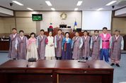 인사이드피플 김재윤 기자 | 상주시의회는 21일 상주시의회 임시회 제3차 본회의에서 정장 대신 한복을 입은 채 의정활동을 펼쳤다. 이날 한복의 날을 맞아 명주의 고장을 알리고 한복 문화 활성화를 위해 의원들이 한복을 입고 등원해 눈길을 끌었다. 상주시의회는 상주를 한복 문화 중심도시로 만들기 위해 ‘한복 입기 활성화 지원 조례안’과 ‘한복 문화산업 진흥에 관한 조례안’을 통해 한복의 일상 문화 향유 기반을 확대하고 우리 고유의 복식인 한복을 체계적으로 계승 발전시키기 위해 노력해 오고 있다. 상주시의회 안경숙 의장은 “명주와 한복의 고장 상주의 자긍심을 높이고 한복 문화 중심도시로 성장하길 바란다.”라고 말했다.