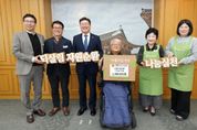 인사이드피플 김재윤 기자 | 전북특별자치도의회는 18일 의장실에서 하나예술창작센터의 장애인 예술 창작활동 지원과 노후 시설 보완 등에 활용해 달라며 기부물품 바자회 수익금 330만 원을 전달했다. 이번 전달식은 지난달 21일 도의회 현관 앞에서 전북특별자치도의회와 아름다운가게 전북본부가 함께 의원 및 사무처 직원들의 물품을 기부받아 진행한 바자회 판매 수익금을 모아 소외된 이웃을 돕기 위해 마련됐다. 문승우 의장은 “의원들과 직원들이 기부한 물품이 다시 지역사회에 따뜻한 나눔으로 돌아간다는 점에서 의미가 크며, 자원순환 캠페인에도 함께 동참할 수 있어 더욱 뜻깊다”며, “행사에 참여해 주신 의원님들과 직원분들게 감사드리며 앞으로도 도민과 함께하는 사회공헌 활동을 이어가겠다”고 말했다. 수익금을 전달받은 전해진 센터장은 “도의회의 따뜻한 나눔이 어려운 이웃에게 큰 힘이 될 것”이라며 “전달된 기금은 장애인 예술가들의 창작활동에 필요한 물품 지원과 노후 장비 보완에 소중하게 사용하겠다.”고 말했다.