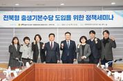 인사이드피플 김재윤 기자 | 전북특별자치도의회 기획행정위원회 최형열 위원장(전주5)은 18일 도의회 세미나실에서 ‘전북형 출생기본수당 도입을 위한 정책세미나’를 개최했다. 전북형 출생기본수당은 전북에서 태어난 신생아가 성인이 될 때까지 매월 일정 금액을 현금으로 지급하는 정책을 말한다. 성인이 될 때까지 월 250유로(한화 약 43만 원)를 지급하는 독일의 ‘킨더겔트’에 뿌리를 두고 있고, 최근 전남이 매월 20만 원을 지급하는 출생기본수당을 도입․시행해 주목받고 있다. 이에 최 위원장은 지난 3월 도정질문을 통해 전북형 출생기본수당의 도입을 제안했고, 이번 세미나도 앞선 도정질문에 관한 논의를 확장하기 위해 기획했다고 밝혔다. 이날 세미나에는 전남연구원의 최지혜 부연구위원이 ‘전라남도 출생기본수당 도입의 쟁점과 과제’를 주제로 발제를 진행했고, 한양대 정책학과 이삼식 교수, 군산대 사회복지학부 서정희 교수, 전북도 인구청년정책과 인구정책팀 박선미 팀장, 전북연구원 인구청년지원연구센터 이주연 센터장이 토론자로 참여했다. 최지혜 부연구위원은 발제를 통해 “저출생․고령화로 인한 인구구조 변화가 가속화되고 있고, 이